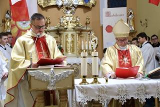Zachęcał wiernych, aby dbali o swoje wnętrze. - Wiara jest łaską i darem, ale można ją stracić. Kto nie będzie pielęgnował wiary w swoim sercu, nie będzie modlił się, to prędzej czy później straci wiarę. Ile potrzeba wysiłku, żeby zadbać o wnętrze. Wielu ludzi przeżywa depresję, bo nie dbają o wnętrze, o samodyscyplinę. Proszę was dbajcie o swoje wnętrze, o stan ducha, tak jak dbacie o tę piękną świątynię. W tym bardzo pomocne są sakramenty święte, bo błądzić jest rzeczą ludzką, ale Miłosierdzie Boże jest bez granic – przekonywał hierarcha.