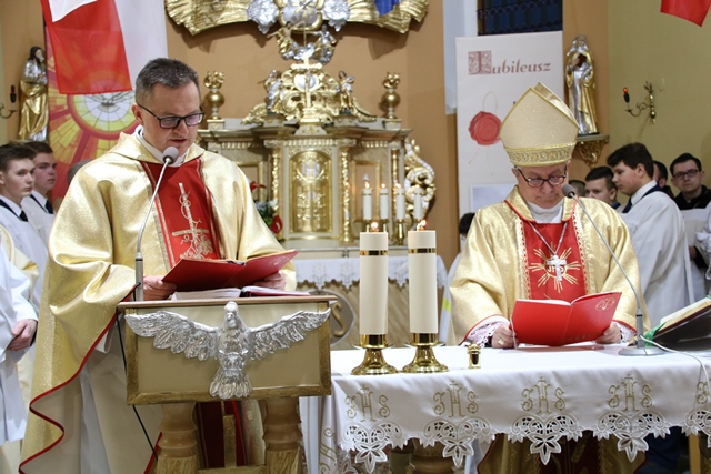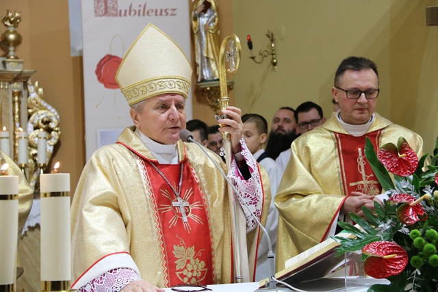 W homilii celebrans dziękował proboszczowi i wiernym za troskę o świątynię. - Pragnę podziękować za waszą miłość do Kościoła, za troskę o świątynię, za ofiarność i modlitwy. Robicie to nie tylko dla siebie, ale przede wszystkim dla  następnych pokoleń. Nigdzie w Piśmie Świętym nie znajdziemy miejsca, gdzie Pan Bóg domagałby się od nas bogatych świątyń, złoconego tabernakulum, On chce mieszkać w naszych sercach – powiedział bp Janiak.