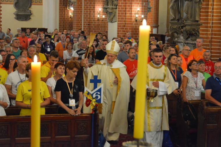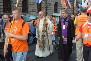 Pielgrzymów na drogę pobłogosławił biskup legnicki Zbigniew Kiernikowski, który skierował do pątników słowa zachęty: - Miejsca święte które pragniemy nawiedzić, świadczą o pobożności ludu Bożego. Często udajemy się tam, aby Bóg swoją łaską umocnił nasze  życie chrześcijańskie i dodał nam zapału o pełnienia dzieł miłości. Chcemy ofiarować wszystko to, co będziemy przeżywać, jako wyraz naszej służby Bogu, przykład naszej wiary, naszej nadziei i miłości. Niech będzie też zachętą dla wszystkich których spotkamy,  a w ten sposób wszyscy, stali mieszkańcy i pielgrzymi możemy się wzajemnie budować i ubogacać – mówił Biskup legnicki.