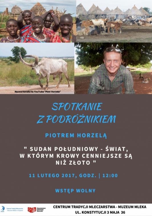 Już jutro (11.02) o godzinie 12 odbędzie się spotkanie z podróżnikiem Piotrem Horzelą w Centrum Tradycji Mleczarstwa - Muzeum Mleka w Grajewie (woj. podlaskim). Tematem przewodnim będzie ,,Sudan Południowy - świat, w którym krowy cenniejsze są niż złoto".
