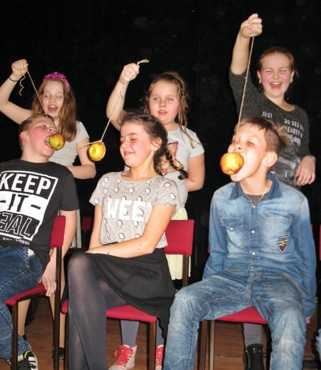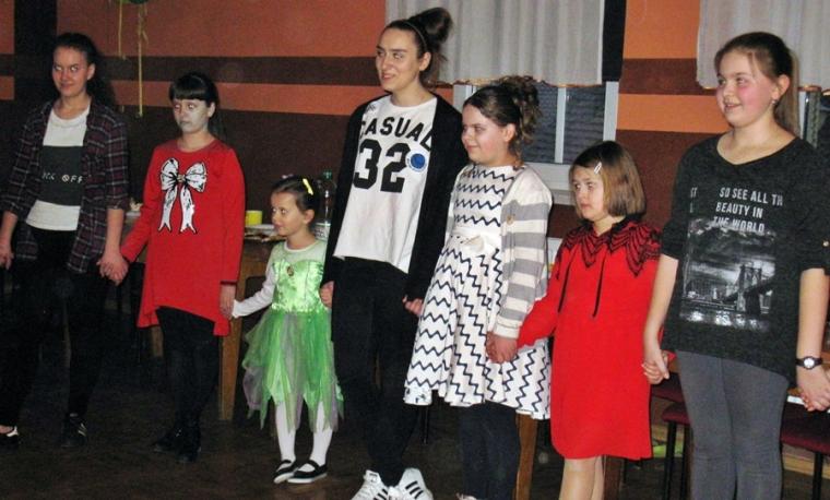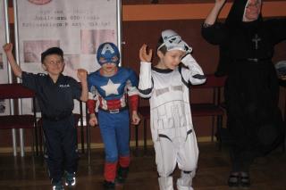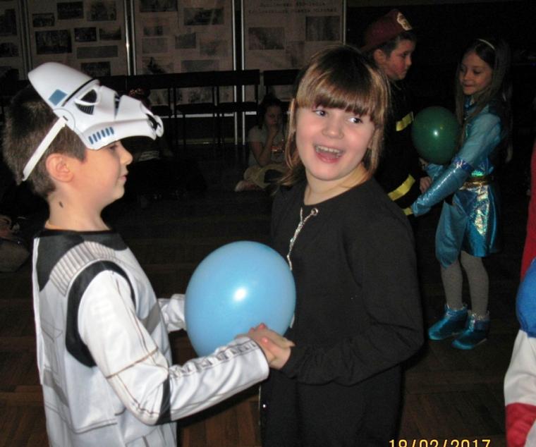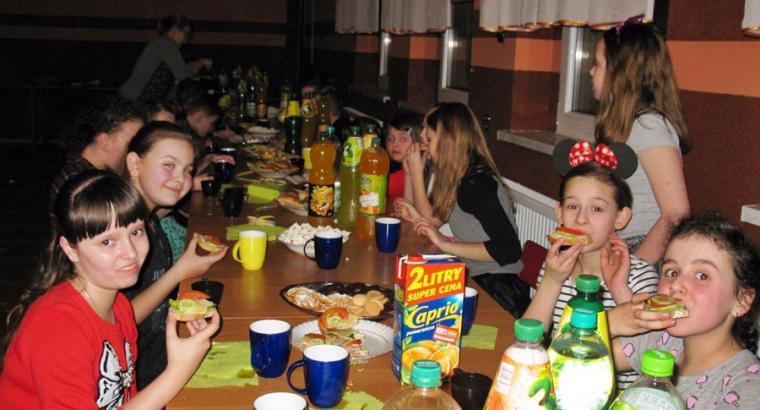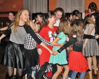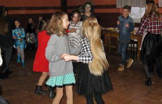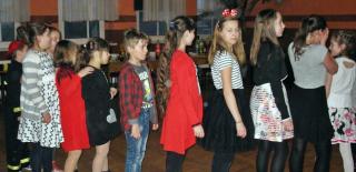 W sobotni karnawałowy wieczór spotkali się na balu. Nie zabrakło dobrej muzyki, przy której młodzi bawili się w parach,  trójkach czy większych grupkach. Było wiele konkursów. Trudną sztuką okazało się zjedzenie jabłka uwiązanego na sznurku. Był taniec z balonem. Na stołach oczywiście nie brakowało słodkich przysmaków, kanapek.