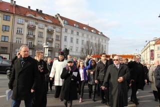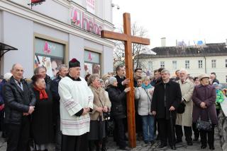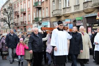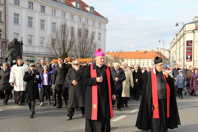 Rozważania do stacji drogi krzyżowej przygotował o. jezuita Józef Augustyn, a odczytał je Jacek Majewski. Drodze krzyżowej towarzyszył śpiew pieśni wielkopostnych i koronki do Miłosierdzia Bożego.