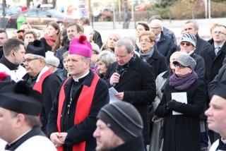 Nabożeństwo zakończyło się przy kościele Świętej Rodziny, gdzie słowo do wiernych skierował bp Łukasz Buzun. – Kończymy rozważania w tajemnicy drogi krzyżowej. Idąc za Jezusem na drodze krzyża i patrząc na swoje rany zrozumieliśmy, że sami nie poradzimy sobie z grzechami, które zraniły nas i innych. Zrozumieliśmy, że mamy uchwycić się zbawczego krzyża Jezusa, ufając Jemu, a nie samemu sobie. Prosimy Cię Panie o łaskę otwarcia naszego serca i umysłu i o to abyś prowadził nas ku zbawieniu – powiedział biskup pomocniczy diecezji kaliskiej. Podziękował kapłanom, klerykom, siostrom zakonnym i wszystkim wiernym za wspólną modlitwę. Dziękował też jezuitom za zorganizowanie drogi krzyżowej z superiorem o. Andrzejem Lemieszem, a także policji, straży miejskiej, straży pożarnej i wszystkim służbom porządkowym.