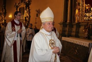 Witając biskupów, duchowieństwo i wiernych biskup kaliski Edward Janiak wskazał na św. Józefa, Opiekuna diecezji kaliskiej. - Z głębi serca pragniemy dziękować dobremu Bogu za wszystkie łaski, jakie nasza diecezja dostąpiła przez tę historyczną decyzję Jana Pawła II. Nadanie patrona św. Józefa całej diecezji to nas jeszcze bardziej zobowiązuje, bo mamy Opiekuna Kościoła Powszechnego jako naszego Opiekuna – podkreślił bp Janiak. Akcentował, że diecezja kaliska to nie tylko obiekty, ale przede wszystkim żywy Kościół. - Ks. Biskup Stanisław kierował Kościołem Kaliskim przez 20 lat i to jest piękny dar łaski Bożej, że może stanąć przy ołtarzu jako ten pierwszy świadek. Naszym obowiązkiem jest, abyśmy ten Kościół przekazali następnemu pokoleniu w nie gorszej kondycji duchowej – zaznaczył ordynariusz kaliski.