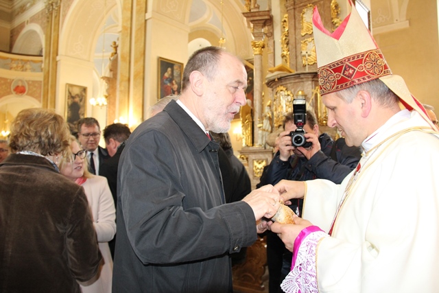 Tradycyjnie już po Mszy św. biskupi podzielili się chlebem ze zgromadzonymi w kaliskiej bazylice. Na zakończenie uroczystości wszyscy udali się pod pomnik św. Jana Pawła II, gdzie złożono kwiaty i odmówiono modlitwę do świętego.