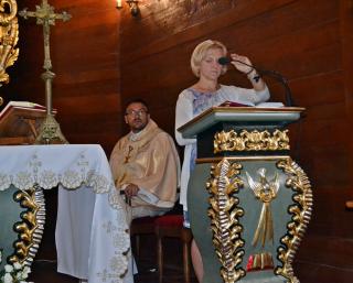 Podczas Eucharystii homilię wygłosił, ks. Krzysztof, duchowy opiekun wspólnoty. Zwrócił w niej uwagę, że jeśli człowiek przyjmie w życiu sceptyczną postawę wobec wiary, to nieustannie będzie stawiał pytania i nawet najbardziej logiczne odpowiedzi, argumenty nie będą dla niego przekonywujące. Kaznodzieja podkreślił, że Jezus żyjąc na ziemi powołał apostołów, gromadził tłumy, wyjaśniał im wszystko do czego Pan Bóg nas zaprasza. Jak podkreślił, na kartach Pisma Świętego wielokrotnie podkreśla się, że uczniowie słuchali słów Jezusa, ale ich nie rozumieli. Kontynuując homilie ks. Krzysztof podkreślił, że do zrozumienia tego wszystkiego do czego zaprasza nas Bóg potrzebny jest Duch Święty. Powiedział m.in.” Duch Święty pomaga nam zrozumieć i zobaczyć genialność i piękno tego, do czego zaprasza nas Pan Bóg. Pan Bóg daje nam różnego rodzaju wskazówki, drogowskazy, na nasze życie, a my możemy być na nie zamknięci, możemy ich nie zauważyć. Działanie Ducha Świętego objawia się w tym, że rozumiemy, widzimy obecność Pana Boga w naszym życiu, rozumiemy te drogowskazy, które On nam daje”. Kończąc homilię ks. Krzysztof zachęcał zebranych w sanktuarium wiernych, by prosili Pana Boga o łaskę rozumienia swej wiary, rozumienia swego życia, a także dostrzegania bliskości Boga.