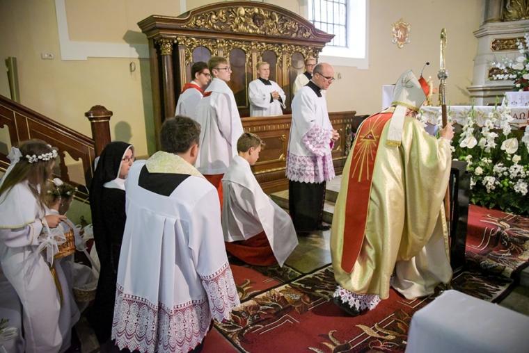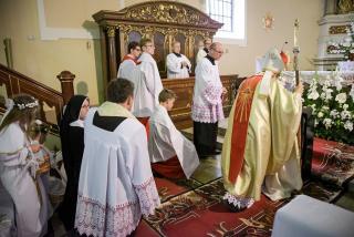 W dzień uroczystości Trójcy Świętej podczas Mszy Świętej sprawowanej o godz. 9:30 rocznicę I Komunii Świętej przeżywały dzieci uczęszczające do klasy IV.