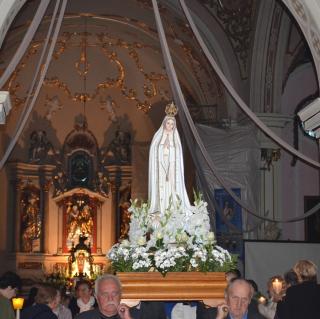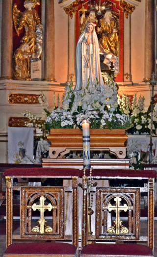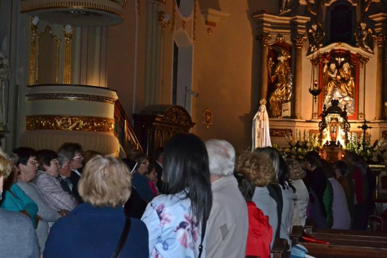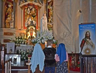 13 czerwca mikstacka wspólnota parafialna( diecezja kaliska) przeżywała nabożeństwo fatimskie. Rozpoczęło się ono o godz. 20:00, przewodniczył mu ks. kan. Krzysztof Ordzianiak. 13 czerwca, przed stu laty miało miejsce drugie objawienie fatimskie. Matka Boża objawiła się pastuszkom: Łucji, Hiacyncie i Franciszkowi. Podczas pierwszego objawienia 13 maja 1917 roku Maryja prosiła dzieci, by przychodziły w to miejsce przez kolejne miesiące właśnie 13. Już podczas pierwszego objawienia w Fatimie Maryja zachęcała dzieci, by codziennie odmawiały różaniec. W maju, w mikstackiej świątyni, odprawione zostało pierwsze w tym roku nabożeństwo fatimskie. Tak jak pastuszkowie w Fatimie od Maryi, wierni usłyszeli z ust swego duszpasterza zachętę do modlitwy różańcowej. Już wtedy do wiernych skierowane zostało zaproszenie na kolejny różaniec fatimski. Wielu parafian odpowiedziało na to zaproszenie i przyszło, by wsłuchać się w słowa Orędzia Fatimskiego przekazanego dzieciom w czerwcu 1917 roku w Fatimie oraz włączyć się w modlitwę różańcową, o którą podczas wszystkich swoich objawień. Rozpoczynając nabożeństwo fatimskie ks. kan. Krzysztof Ordziniak podkreślił, że tą modlitwą różańcową rozpoczynamy także bezpośrednie przygotowanie modlitewne do uroczystości odpustowych ku czci Świętego Rocha. Od tych uroczystości dzieli nas dokładnie 9 tygodni. W kolejne środy będziemy gromadzić się na modlitwie różańcowej, wszak Święty Roch został wyproszony przez swoją Matkę Liberię u Boga za wstawiennictwem Matki Bożej. Na mikstackim obrazie przedstawiony jest właśnie z różańcem.