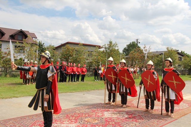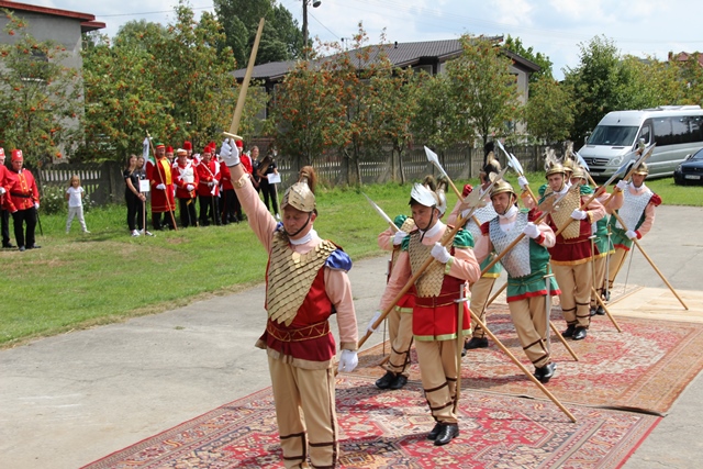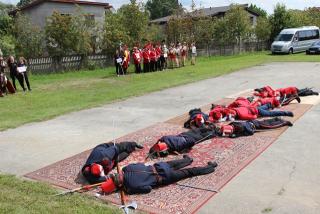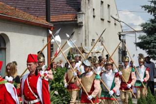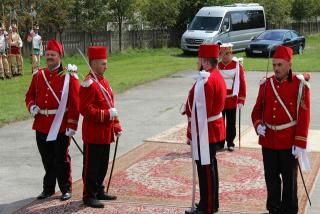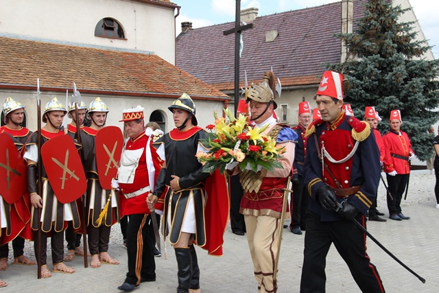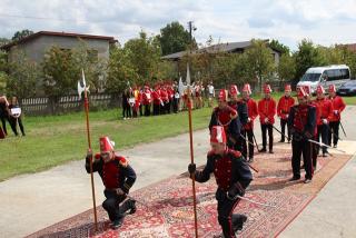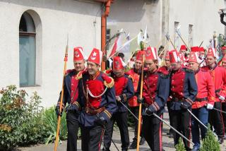 Przed salą wiejską odbyła się prezentacja przybyłych na uroczystość Straży Grobu Pańskiego.
