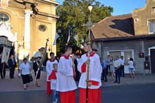 Uroczystości odpustowe ku czci św. Rocha to jedno z najważniejszych wydarzeń w roku w mikstackiej wspólnocie parafialnej. Już 7 sierpnia rozpoczęły się duchowe przygotowania do tej uroczystości. Młodzi parafianie spotykali się w Szkole św. Rocha. Wielu parafian codziennie o godz. 18:30 uczestniczyło we Mszy św. połączonej z Nowenną do św. Rocha. W przedodpustowych dniach nauki rekolekcyjne głosił ks. kan. Bogumił Kempa. W uroczystość Wniebowzięcia Matki Bożej o godz. 18:00 w kościele farnym sprawowana była Msza św. podczas której wysłuchaliśmy ostatniej nauki rekolekcyjnej. Ks. Bogumił podkreślał w niej miłość Boga do człowieka. Zaakcentował, że Bóg wybierając Maryję na Matkę Jezusa chciał być blisko człowieka. Nawiązując do Święta Wojska Polskiego zapytał o jaką Polskę walczyli i za jaką Polskę ginęli nasi rodacy. Podkreślił, że powinniśmy być dumni z tego, że jesteśmy Polakami, z tego że mamy, tu w Mikstacie naszego świętego Rocha. Podkreślił znaczenia tradycji w życiu wspólnoty. Wiele ważnych słów skierował do nas podczas rekolekcyjnych nauk, zachęcających do przemiany życia, pracy nad sobą, do naśladowania naszego niebieskiego Patrona. Z pewnością pomogły nam one w przygotowaniu pięknego, szczególnego odpustowego czasu. A ten właśnie w Diecezjalnym Sanktuarium Świętego Rocha w Mikstacie trwa. Po Mszy św. z kościoła farnego wyruszyła uroczysta procesja z Najświętszym Sakramentem i relikwiami niebieskiego Patrona na Wzgórze Mikstackie, gdzie znajduje się Diecezjalne Sanktuarium Świętego Rocha. W procesji uczestniczyli kapłani posługujący na co dzień w mikstackiej wspólnocie, z niej pochodzący oraz liczna rzesza parafian, gości i pielgrzymów. Z feretronami, sztandarami przy dźwiękach orkiestry parafialnej przeszliśmy na miejsce głównych uroczystości. Po przybyciu do Sanktuarium odśpiewane zostały uroczyste nieszpory i odprawiona Nowenna do Świętego Rocha. Po Nowennie rozpoczęło się całonocne czuwanie modlitewne. Wiele osób w tej nocnej ciszy zapewne nawiedzi Sanktuarium, by z Jezusem ukrytym w Najświętszym Sakramencie i naszym patronem Świętym Rochem podzielić się swoimi radościami i troskami, by podziękować za otrzymane łaski i prosić o dalszą opiekę i wsparcie.