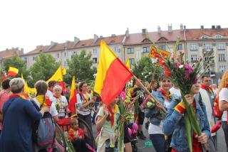Mieszkańcy Kalisza wyszli 19 sierpnia na ulice miasta, aby powitać powracających z Jasnej Góry pielgrzymów 380. Pieszej Pielgrzymki Kaliskiej i 26. Diecezji Kaliskiej.
