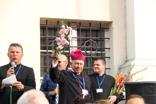 Dziękował też pielgrzymom za ich świadectwo. - I wam dziękujemy pielgrzymi. Dziękujemy, że zechcieliście stanąć na tym pielgrzymim szlaku, który teraz w tych dniach i tygodniach wiedzie przez naszą ojczyznę rozmaitymi drogami, ścieżkami na miejsca naznaczone obecnością Matki Bożej, wśród nich tam na Jasną Górę. Chcieliście stanąć na tym pielgrzymim szlaku, aby reprezentować Kalisz i naszą kaliską diecezję. Miejcie świadomość, że jesteście tymi, którzy zapisali się w historii 380. Pielgrzymką Kaliską, najstarszą w naszej ojczyźnie i 26. w dziejach naszej młodej diecezji – stwierdził bp Napierała.