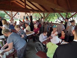 Piękne były te odpustowe dni w lutogniewskim sanktuarium Matki Bożej Pocieszenia. Uczestniczyło w nich kilkanaście tysięcy pielgrzymów. W pierwszym dniu uroczystości odpustowych do sanktuarium już po raz XV przybyła Pielgrzymka Osób Niepełnosprawnych wraz z opiekunami. Przybyli m.in. z Baszkowa, Krotoszyna, Pleszewa, Ostrowa Wielkopolskiego, Zdun, przedstawiciele Ruchu Światło i Wiara oraz inne osoby terenu diecezji kaliskiej, by tu u stóp Matki Boże Pocieszenia złożyć swoje troski, lęki, niepokoje, ofiarować swoje cierpienia, by prosić o potrzebne łaski, a za otrzymane dziękować. Przy bramie prowadzącej do sanktuarium pielgrzymów witał i błogosławił ks. kustosz Łukasz Żurawski. O godz. 10:00 w sanktuarium w ich intencji sprawował Mszę św. ks. Mateusz Klaczyński. Wypełniło się lutogniewskie sanktuarium wiernymi. Piękne było to spotkanie osób niepełnosprawnych z Matką Bożą Pocieszenia. Po Mszy św. wszyscy spotkali się przy wspólnym stole. Czas odpustu, to czas szczególnych łask, ale także świętowania, radosnych spotkań. Taki był zapewne ten czas dla pielgrzymujących po raz XV Osób Niepełnosprawnych.
