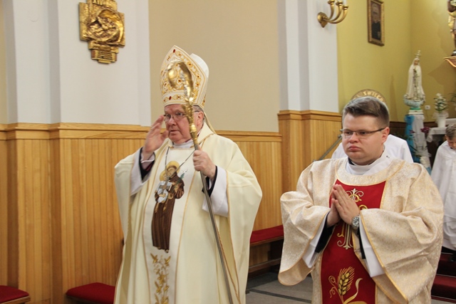 W swoim słowie abp Marian Gołębiewski wskazywał na znaczenie świątyni. - W liturgii jest cudowne przejście od świątyni materialnej do świątyni duchowej. W Nowym Testamencie człowieczeństwo Jezusa Chrystusa stało się najwspanialszą świątynią świata, bo nosiło bóstwo Syna Bożego, Jezusa Chrystusa, a potem tą świątynią staje się każdy z nas, jeśli jest w stanie łaski uświęcającej, przyjmuje Chrystusa w Eucharystii do swego serca i staje się żywą monstrancją. To są wielkie prawdy o kościele – powiedział metropolita wrocławski senior.Życzył parafianom, aby św. Antoni wypraszał wiele łask dla całej wspólnoty. - Ileż tutaj cudownych rzeczy działo się przez te 70 lat, ileż chrztów św., komunii św., sakramentów bierzmowania, ileż zawartych małżeństw, ileż pogrzebów, ileż nawróceń, ile łez wylanych tutaj w skrytości serca, kiedy tutejsi parafianie przeżywali sprawy trudne, a ile radości, kiedy przeżywali sprawy radosne i wzniosłe. Niech patron św. Antoni Padewski wyprasza dla tej wspólnoty wiele łask. Niech dobry Bóg pochyla się nad wami w swoim miłosierdziu, a wy zachowajcie wiarę w swoim sercu, wierność krzyżowi, Ewangelii i Kościołowi – zaznaczył celebrans.