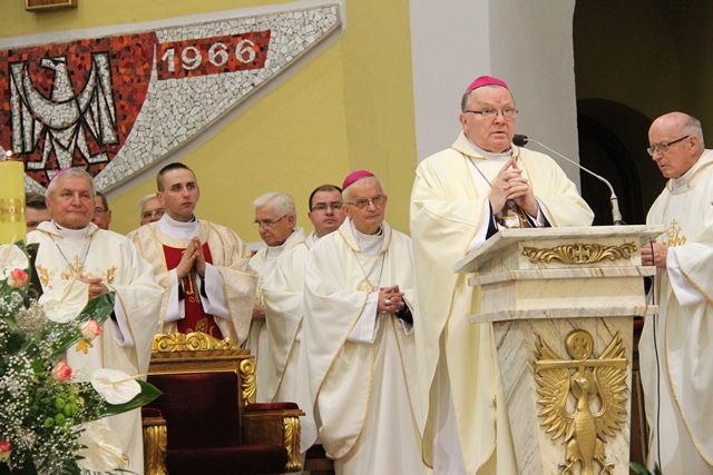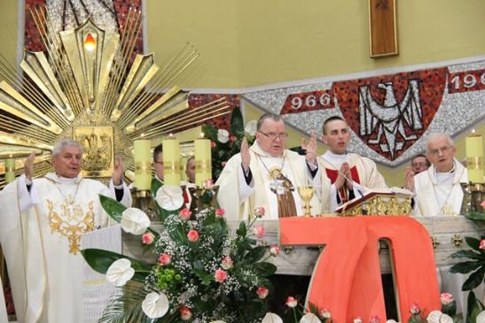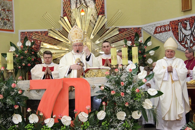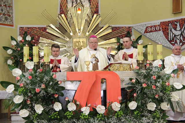 Zaznaczył, że jubileusz poświęcenia tej świątyni jest okazją do dziękczynienia Bogu. – Dziękujmy Bogu, że zechciał zamieszkać wśród nas, że mieszka w Najświętszym Sakramencie, że jest obecny w naszym życiu osobistym, rodzinnym, społecznym i narodowym – podkreślał kaznodzieja.