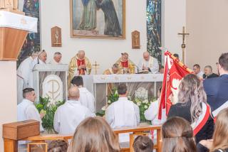 Patronowi parafii, św. Stanisławowi Kostce, towarzyszyło zawołanie św. Ignacego z Loyoli, założyciela Zgromadzenia Jezuitów: „ad maiorem Dei gloriam”. Do wyrazów wdzięczności dołączam życzenia, by życie parafii nadal przebiegało w tym samym duchu – na coraz większą chwałę Boga i dla Waszego dobra doczesnego i wiecznego! A ponieważ największą chwałą Boga jest człowiek święty, dlatego życzę Wam, Drodzy Bracia i Siostry, wytrwania na drodze do świętości w rodzinie Kościoła, w towarzystwie św. Stanisława Kostki i pod macierzyńskim spojrzeniem Niepokalanej Maryi, która jest dla nas przewodniczką w wierze. Z troską o świętość łączcie w dalszym ciągu troskę o własną tożsamość narodową, o wierność temu dziedzictwu, które jest naszym bogactwem i któremu na imię Polska!