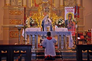 Druhny i druhowie OSP Mikstat zgromadzili się w strażnicy skąd wraz z pocztem sztandarowym przeszli do kościoła. Przybyli tu także strażacy z Kaliszkowic Kaliskich.