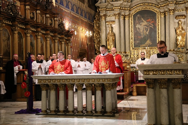 Podczas liturgii Wielkiego Piątku z bp Łukaszem Buzunem modlili się: biskup kaliski Edward Janiak, bp senior Stanisław Napierała, proboszcz katedry ks. prał. Adam Modliński, kapłani pracujący w Kurii Diecezjalnej i katedrze.