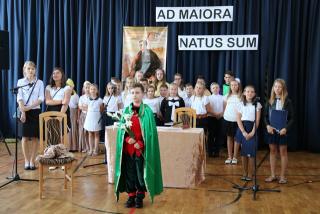 Druga część uroczystości odbyła w budynku szkoły w Przytocznicy, gdzie uczniowie w programie artystycznym ukazali życiorys swojego patrona.