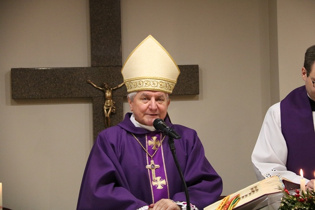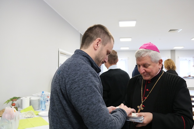 Po Mszy św. biskup kaliski Edward Janiak przełamał się opłatkiem z rodzinami i zasiadł do wspólnej wieczerzy.