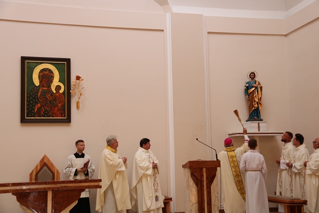 Dziękował parafianom za troskę o świątynię. Słowa wdzięczności wypowiedział do obecnego na uroczystości ks. prał. Marka Otręby, który był budowniczym kościoła. Wskazał, że bardzo wiele dokonał przez ostatnie trzy lata ks. prał. Leszek Szkopek.