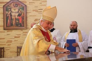Biskup kaliski poświęcił także ołtarz św. Wawrzyńca, obraz Świętej Rodziny i nowe witraże, a także wmurował ziemię z Jerozolimy w ścianę powstającej Kaplicy Miłosierdzia Bożego.