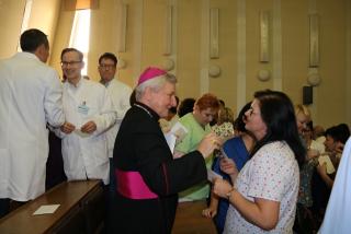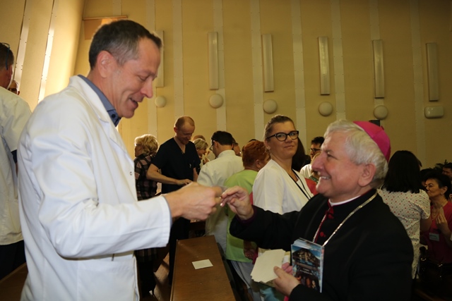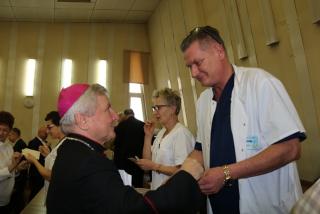 W słowie skierowanym do pracowników szpitala bp Edward Janiak dziękował za troskę o pacjentów. – Dziękuję lekarzom i pielęgniarkom, że dzień i noc są do dyspozycji chorych. Proszę przyjąć serdeczne podziękowanie za tę służbę – mówił biskup kaliski.