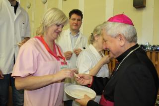 W słowie skierowanym do pracowników szpitala bp Edward Janiak dziękował za troskę o pacjentów. – Nieraz nie zdajemy sobie sprawy, jak ważna jest rola pielęgniarki, która uśmiechnie się do pacjenta. Ogromnie ważne jest to, aby dawać drugiemu człowiekowi nadzieję. Proszę przyjąć serdeczne podziękowanie za tę służbę, która jest często niedostrzegana. Rzadko kto dziękuje za trud nieprzespanej nocy, dyżury, poświęcenie – mówił biskup kaliski.