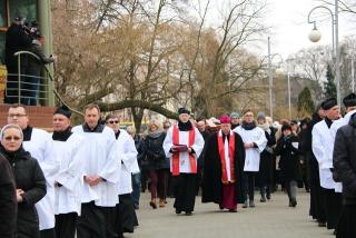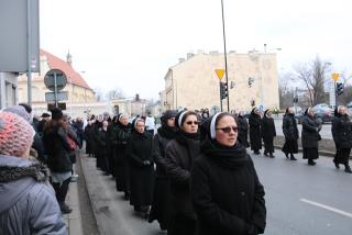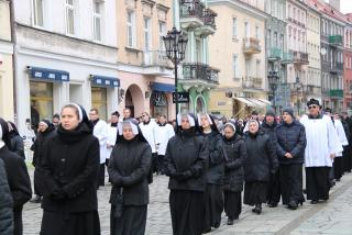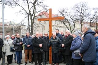 Droga krzyżowa rozpoczęła się przy Grocie Katyńskiej na placu przy Sanktuarium Serca Jezusa Miłosiernego Ojców Jezuitów. Tegoroczne nabożeństwo poświęcono małżonkom i rodzinom. – Papież Franciszek w centrum tego roku stawia nam św. Józefa, Oblubieńca Najświętszej Maryi Panny, którzy razem stworzyli piękne małżeństwo i piękną rodzinę. Rodzina dzisiaj w naszej ojczyźnie i na całym świecie jest zagrożona. Przeżywa kryzysy, często rozpada się. Małżeństwa mają swoją drogę krzyżową. Potrzebna jest modlitwa, dlatego w tej drodze krzyżowej ulicami Kalisza pragniemy objąć małżonków, tych młodych i ze starszym stażem wiekowym – mówił bp Stanisław Napierała rozpoczynając wielkopostne nabożeństwo.
