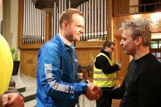 Półmaraton zakończył się w kościele św. Pawła Apostoła w Ostrowie Wielkopolskim wspólną modlitwą i rozdaniem pamiątkowych medali. Wcześniej, o godz. 21.00, w oczekiwaniu na powrót biegaczy w ostrowskiej świątyni odprawione zostało nabożeństwo drogi krzyżowej. Uczestników Biegowej Drogi Krzyżowej witał ks. kan. Jacek Kita. – Bądźcie dumni z siebie i z treści oraz wartości, które dziś ukazaliście poprzez świadectwo wiary w tej drodze krzyżowej. Bądźcie dumni z siebie, że jesteście Polakami i katolikami. Bądźcie dumni z tych treści i bądźcie tego świadkami w swoich miejscowościach. Dzisiaj świat nie potrzebuje nauczycieli, ale potrzebuje świadków. Bóg, honor i ojczyzna, a także krzyż na Giewoncie to są zawsze te znaki, które gdzieś głęboko leżą w naszych sercach - powiedział proboszcz parafii św. Pawła Apostoła w Ostrowie Wielkopolskim. Dziękował biegaczom za świadectwo wiary. - Dziękuję wam za to piękne świadectwo waszej wiary i przywiązania do tego, co stanowi filar naszej tożsamości narodowej – powiedział ks. Kita.