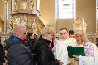 Stwierdził, że cierpienie złączone z krzyżem Chrystusowym nabiera sensu. - Cierpienie jest tajemnicą w życiu człowieka. Nigdy nie mówmy, że ktoś cierpi, bo go Pan Bóg skarał. Nie wiesz czy nie cierpi za mnie, za ciebie. Tylko cierpienie złączone z tajemnicą krzyża nabiera głębokiego sensu, ale my jako ludzie sprawdzamy się w naszej miłości do Boga poprzez wrażliwość na drugiego człowieka – podkreślił bp Janiak.