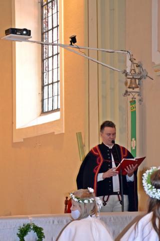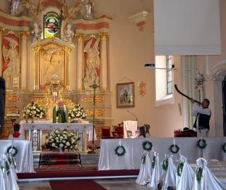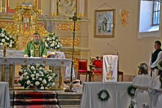 Gdy ks. proboszcz Krzysztof udzielał wiernym Komunię św. w świątyni rozbrzmiewały pieśni w wykonaniu Folk Kapeli. Była wśród nich i ta z życzeniami Bożego błogosławieństwa.
