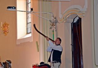 W niedzielne przedpołudnie mieliśmy okazję uczestniczyć w jednym z nich zatytułowanym „ Nuty góralskie o św. Janie Pawle II”. Poprzedziła go Eucharystia, którą w sposób aktywny włączyli się członkowie Kapeli „Góralska Hora”. Mieliśmy okazję wysłuchać czytań, które tym razem wybrzmiały w naszym kościele w gwarze góralskiej. Odśpiewany psalm, był próbką uczty duchowej, która czekała nas po Eucharystii. Także podczas Przeistoczenia, tym razem, nie rozległ się głos dzwonków, ale rogu pasterskiego.