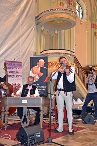 Po Mszy świętej odbył się koncert Zebrani w kościele usłyszeli wyjaśnienie znaczenia nazwy Kapeli. Było kilka słów o miłości św. Jana Pawła do gór. Potem dźwięki góralskiej muzyki wypełniły naszą świątynie. W doświadczeniu klimatów górskich i miejsc, które szczególnie ukochał Papież – Polak pomocna była prezentacja multimedialna.