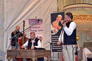 Koncertowa część rozpoczęła się od pieśni „Bystra woda”. Była i znana zapewne wielu pieśń, która wybrzmiała W Zakopanem podczas pobytu Jana Pawła II na Podhalu w 1997 roku. Usłyszeliśmy także dźwięki, które towarzyszą góralom udającym się do sanktuarium maryjnego. Prowadzący konferansjerkę członek Kapeli przypomniał zebranym mikstackim kościele, że Jan Paweł II ukochał wolność. Wyjaśnił, że po góralsku wolność to Śleboda, a nawiązując do jednego ze szczytów Krywania podkreślił, że kojarzy się on właśnie góralom z wolnością. Kolejny utwór zaprezentowany przez Kapelę nawiązywał właśnie do tej góry. Nie mogło oczywiście zabraknąć ulubionej przez Jana Pawła II „Barki”. Tu w śpiew włączyli się zgromadzeni w kościele, podobnie jak wtedy gdy popłynęły dźwięki pieśni „Góralu czy ci nie żal”. Wysłuchaliśmy jeszcze kilku innych utworów, które nierozłącznie kojarzone są z Janem Pawłem II bądź przez niego szczególnie lubiane.