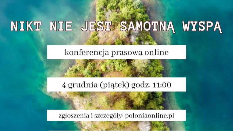 W piatek, 4 grudnia o godz. 11.00 odbyła sie konferencja prasowa pt.:„Nie jesteś samotną wyspą”. Konferencja była poświęcona Kongresowi Młodzieży Polonijnej, który odbywa się obecnie w formie online. Uczestniczy w nim młodzież z całego świata.