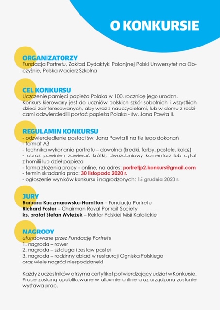 Dla uczczenia pamięci papieża Polaka w 100. rocznicę jego urodzin Zakład Dydaktyki Polonijnej Polskiego Uniwersytetu na Obczyżnie zorganizował konkurs dla dzieci poloninych na Portret św. Jana Pawła II. Konkurs skierowany jest do dzieci polskich szkół sobotnich i wszystkich zainteresowanych aby z nauczycielami lub w domu z rodzicami odzierciedlili postać Papieża Jana Pawła II