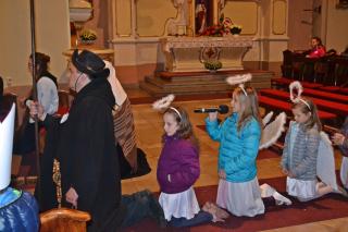 W trakcie modlitwy różańcowej pojawił się i św. Mikołaj. Za tego, tak lubianego, zwłaszcza przez dzieci, Świętego przebrał się ksiądz kan. Zbigniew Mielcarek, który po zakończeniu modlitwy różańcowej udzielił zebranym w kościele błogosławieństwa.