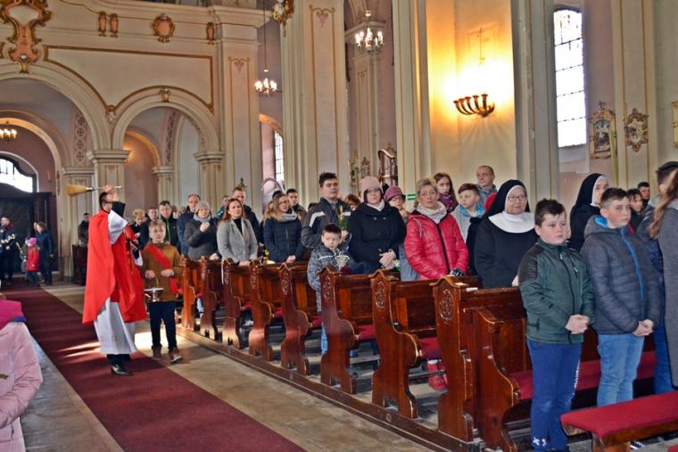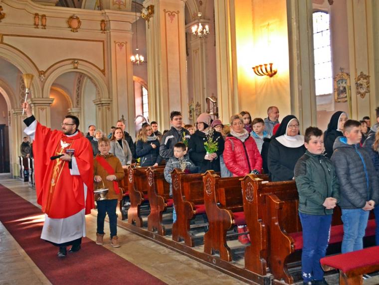 Niedziela Palmowa rozpoczyna Wielki Tydzień. Na pamiątkę wjazdu Jezusa do Jerozolimy, kiedy to tłumy rzucały pod Jego stopy gałązki wołając „ Hosanna Synowi Dawidowemu” do kościoła przynosi się do pobłogosławienia gałązki palmowe. Są one symbolem odradzającego się życia. W naszej wspólnocie obrzęd błogosławienia palm miał miejsce na wszystkich Mszach Świętych. Szczególnie uroczysty charakter miała Msza Święta o godz. 11:00, gdyż uczestniczyli w niej licznie młodzi parafianie, którzy w tym dniu obchodzą swoje święto.