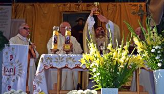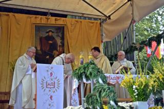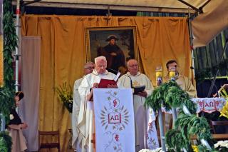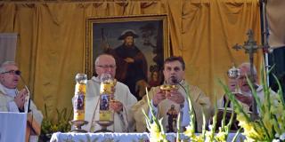 16 sierpnia w Diecezjalnym Sanktuarium Świętego Rocha w Mikstacie odbyły się uroczystości odpustowe połączone z obrzędem błogosławieństwa zwierząt. Poprzedza go sprawowana przy ołtarzu polowym o godz.8:00 Msza św. w intencji gospodarzy oraz o Boże błogosławieństwo w pracy i inwentarzu. To właśnie wiara sprawia, że od pokoleń w dniu wspomnienia św. Rocha, 16 sierpnia Cmentarne Wzgórze wypełnione jest wiernymi. Mszy świętej koncelebrowanej przewodniczył kustosz sanktuarium ks. kan. Krzysztof Ordziniak. Współcelebransami byli ks. kan. Jerzy Rasiak, ks. kan. Andrzej Grabański i ks. Ryszard Zieliński. Podczas tej Eucharystii wybrzmiały słowa błogosławieństw. W homilii ks. kustosz podkreślił, że słowa „ błogosławieni miłosierni, albowiem oni miłosierdzia dostąpią” stanowią w pewnym sensie motto odpustowej liturgii. Podkreślił, że żył nim patron naszego sanktuarium. Zwrócił uwagę, że Kościół wspominając postacie świętych i błogosławionych daje nam wzory do naśladowania. Kontynuując ks. kan. Krzysztof Ordziniak przypomniał postać św. Rocha akcentując jego postawę miłosierdzia. Przypomniał, że podczas nowenny przygotowującej nas do uroczystości odpustowych pochylaliśmy się dzięki słowu głoszonemu przez kapłanów mikstackiego dekanatu właśnie nad błogosławieństwami. Ks. kustosz podkreślił, że uroczystość odpustowa ukazuje nam perspektywę życia na przykładzie św. Rocha, motywując do życia godnego ucznia Chrystusa. Kończąc homili zachęcał: „Bądźmy ludźmi wspaniałomyślnymi, otwartymi, nie zatrzymującymi się na tym co tylko nam może służyć, co jest nam wygodne”. We mszy św. uczestniczyło dwóch chłopców przebranych za św. Rocha. Specyficzna była atmosfera tej mszy świętej. Do uszu osób w niej uczestniczących dochodziło z oddali szczekanie psów, rżenie koni. Był to znak, że już przed bramą prowadzącą do sanktuarium gromadzą się właściciele ze swoimi zwierzątkami. Nikomu chyba w tym dniu nie przeszkadzały te odgłosy, nikt nie narzekał, że trudno się było skupić podczas Eucharystii. Święty Roch przecież jest opiekunem zwierząt. Po zakończonej Eucharystii odbył się obrzęd błogosławieństwa zwierząt. Przewodniczył mu ks. biskup Łukasz Buzun.Wielka jest siła wiary mikstackich parafian, ale i tradycji. Ma ona ponad trzysta lat…