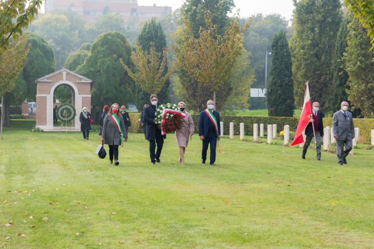 Po Mszy św. nastąpiło złożenia wieńców na Polskim Cmentarzu Wojennym, następnie na Cmentarzu Commonwealth oraz pod tablicą na Porta di Strada Maggiore.