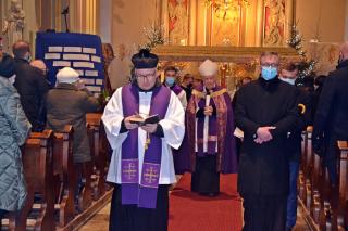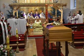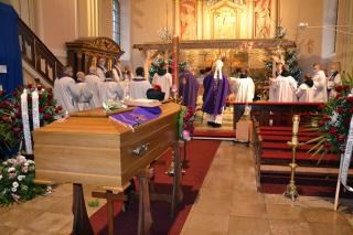 Kończąc homilię ks. biskup Ignacy powiedział: „Spoczywaj w pokoju dobry kapłanie, przyjacielu, Boga, człowieka, stron rodzinnych, prawdy, dobra i piękna. Przyjacielu mądrości i radości. Dołącz do grona świętych mężów w niebie. Niech Maryja, którą miłowałeś na ziemskich drogach Twojego życia niech Cię teraz przytuli do swojego matczynego serca i zaprowadzi do Jezusa. Wierzymy, że swoją chorobą, cichym cierpieniem spłaciłeś już dług swoich słabości i znajdziesz Boże miłosierdzie, któremu zawsze ufałeś. My się dziś za Tobą wstawiamy w tej świątyni przed Panem i mówimy spoczywaj w pokoju. Do zobaczenia w wieczności. Amen”.