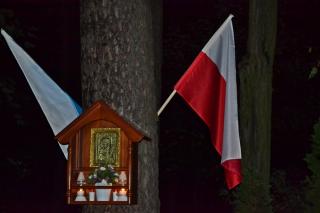Następnie rozpoczęła się modlitwa różańcowa. Odmawialiśmy tajemnice światła. Ksiądz zachęcił, by każdy przedstawił Matce Bożej swoją intencję. Wymienił ponadto trzy intencje wspólne, dziękczynienia za przodków, którzy ustawili tę kapliczkę, za wszystkich, którzy zaangażowali się w jej odnowienie oraz za wszystkie te sprawy zebranych, które nie pozwalają nam jeszcze do końca zaufać Bogu. Podkreślił znaczenie i moc modlitwy wspólnotowej.
