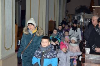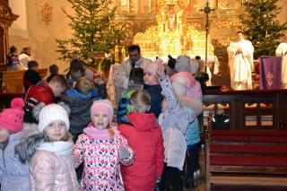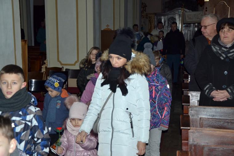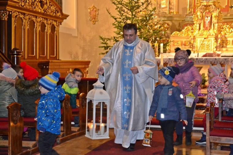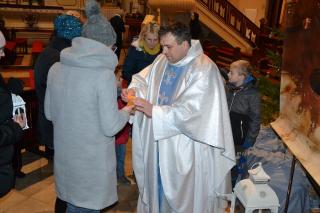 Po zakończeniu mszy świętej, przy banerze przedstawiającym Grotę Narodzenia Pana Jezusa ks. proboszcz zapalał świece, lampki przyniesione przez wiernych. Wiele osób zabrało do swoich domów Betlejemskie Światło Pokoju. Stojące przy ołtarzu w kościele i zaniesione do naszych domów Betlejemskie Światło Pokoju przypomina nam, że Pan jest już blisko, naprawdę blisko. Mobilizuje nas ono do czuwania i oczekiwania wraz z Maryją Józefem na przyjście Pana.