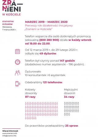 Niniejsze rekomendacje przedstawiliśmy 7 marca 2020 r. gronu specjalistów, z którymi współpracowaliśmy przy tworzeniu telefonu wsparcia i w trakcie pierwszego roku działalności, a także Delegatowi KEP ds. Ochrony Dzieci i Młodzieży oraz przedstawicielom Biura Delegata i Fundacji Świętego Józefa.