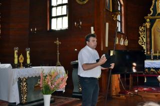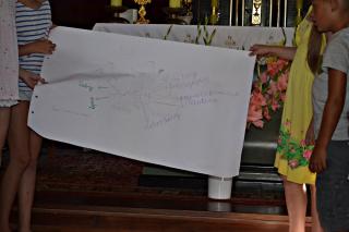 Spotkanie rozpoczęło się wspólną modlitwą. Ksiądz kustosz zwrócił uwagę  na staranne wykonywanie znaku krzyża. Wyjaśnił, że czyniąc go czcimy i wyznajemy wiarę w Trójce Świętą, która patronuje naszej farze.