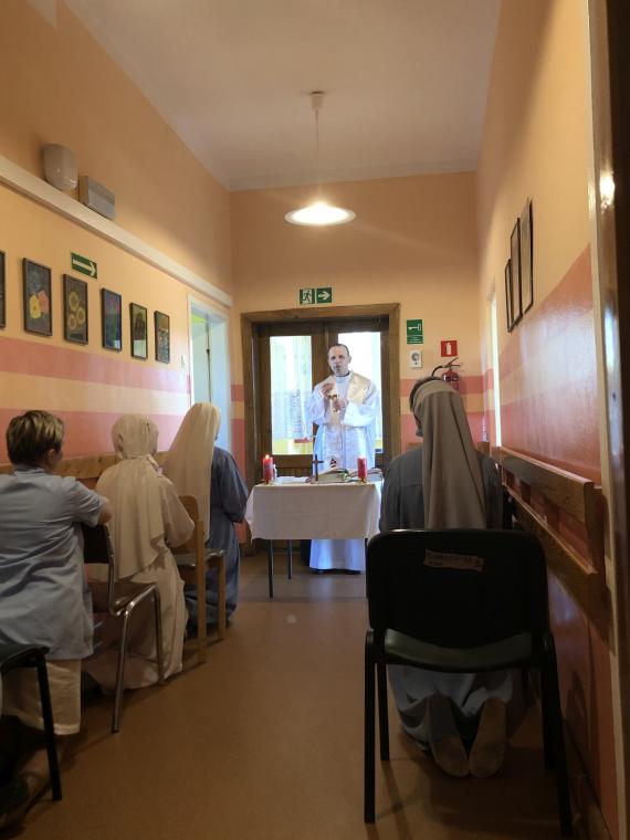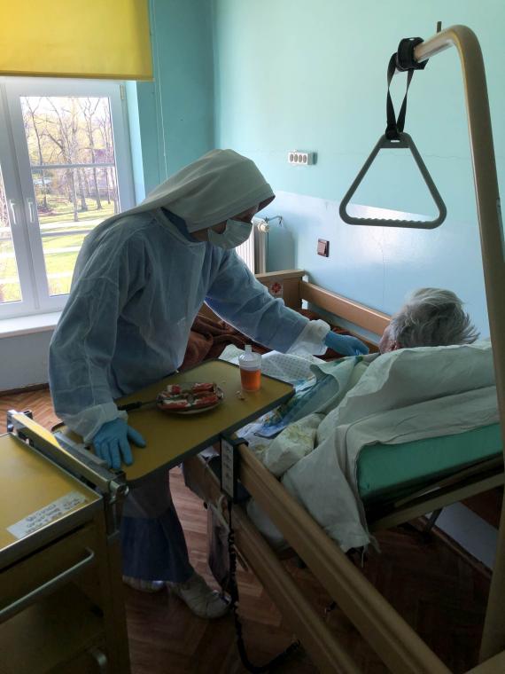 Siostry, ksiądz i wolontariusze opiekują sią zakażonymi