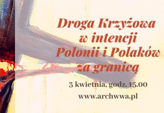 „Od kilku lat z inicjatywy Stowarzyszenia „Wspólnota Polska" odprawiana jest w okresie Wielkiego Postu droga krzyżowa w intencji Polonii i Polaków za granicą. W bieżącym roku, w wyjątkowym czasie ze względu na pandemię, chciałbym zaprosić naszych Rodaków żyjących poza granicami kraju do wspólnej modlitwy dzięki bezpośredniej transmisji Drogi Krzyżowej” – powiedział bp Lechowicz.