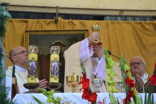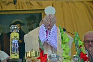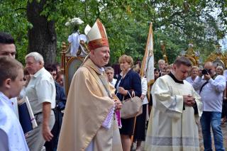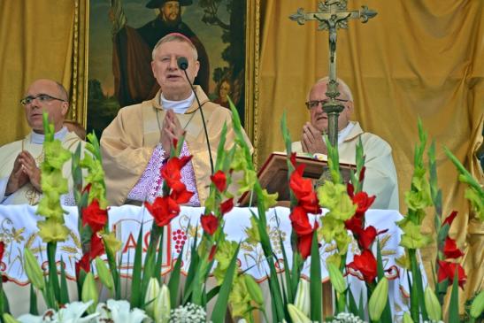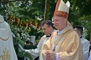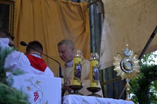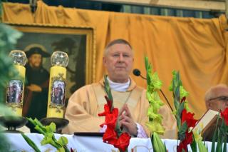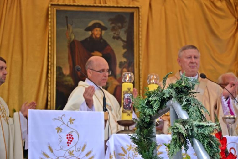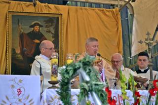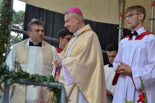 Podczas uroczystej sumy homilię wygłosił ks. bp Wiesław Szlachetka. Na początku ksiądz biskup skierował słowa powitania do ks. kustosz, przedstawicieli władz, lekarzy weterynarii, parafian i pielgrzymów. Ksiądz biskup podkreślił, że przybyliśmy na to Mikstackie Wzgórze, by prosić świętego Rocha o wstawiennictwo i uczyć się od niego miłości do Boga i bliźnich oraz szacunku dla wszystkich stworzeń. Hierarcha zachęcał zgromadzonych do skorzystania z daru odpustu.