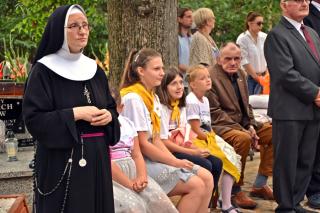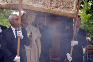 Po mszy świętej Ksiądz Biskup odczytał litanię do św. Rocha. Następnie procesja z Najświętszym Sakramentem przeszła cmentarnymi alejami. Błogosławieństwo Najświętszym Sakramentem zakończyło uroczystą sumę odpustową. Zgodnie z tradycją po Mszy św. wierni zabierali do domów małe chlebki, by podzielić się nimi z bliskimi. Przy rozdawaniu chlebków pomagali uczestnicy spotkań w Szkole św. Rocha oraz dziewczęta z Eucharystycznego Ruchu Młodych.